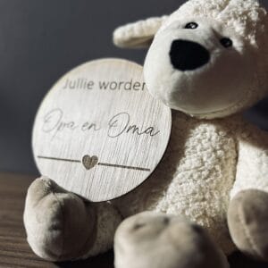 Jullie verwachten een kindje, gefeliciteerd! Maak jullie zwangerschap op een originele manier bekend met dit gepersonaliseerde houten bord. Het bordje is naar eigen wens te personaliseren, de streep met het hartje onderaan is standaard.